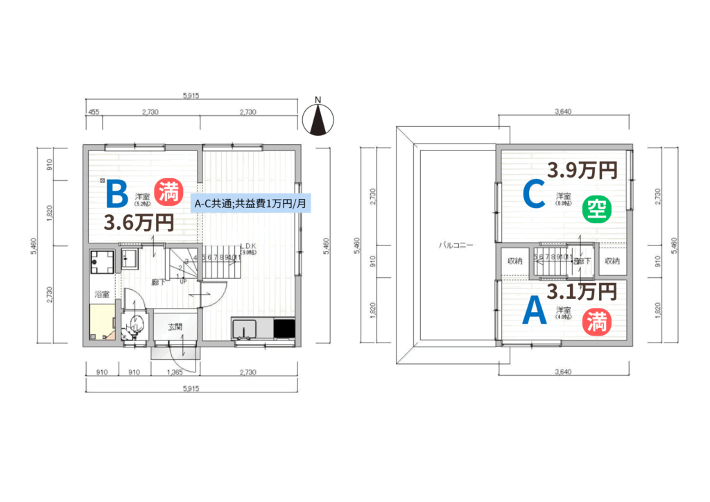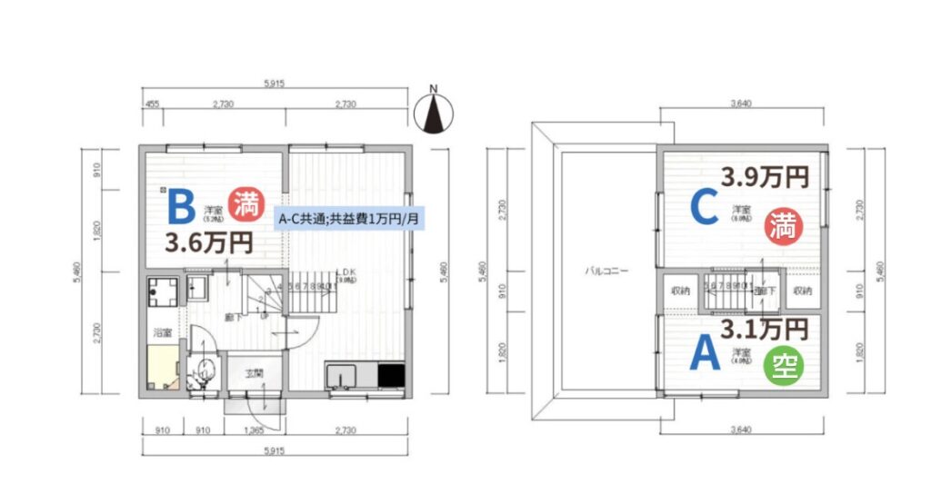 家賃(部屋により変動)+ 共益費(光熱費込み) 1万円/月 ※敷金・礼金など初期費用なし/共益費は毎月一定